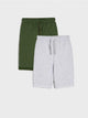 Shorts, 2 pairs, comfortable drawstring waist, two pockets, striped pattern.