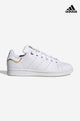 From '70s hardwood classic to everyday footwear staple, the adidas Superstar trainer is an instantly recognisable icon. This juniors' version of the shoes keeps the classic silhouette with the famous shell toe for added style and protection. Iridescent 3-Stripes ride on a clean synthetic leather upper while metallic-gold branding signs off on the tongue and sides. The result? A legend-worthy everyday look.