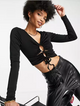 Twill contrast stitch tie shoulder minimal jumpsuit in tobacco