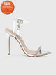 is a glamorous shoe that combines sleek design with sparkling accents. Designed in a soft nude fabric, this heel features a crystal-studded front accessory and an elasticated back strap for comfort and ease of wear. The rubber sole provides grip, while the 95mm heel adds dramatic elevation—ideal for elegant evenings or standout style moments.