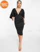 • Asos Design bridesmaid satin kmono sleeve maxi dress with panelled skirt and belt in pink