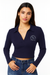 Forever 21 Women's Navy Ribbed Polo Neck Long Sleeve Blouse | Forever– SuperDokan