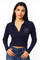 Forever 21 Women's Navy Ribbed Polo Neck Long Sleeve Blouse