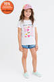 For little fashionistas who love comfort and style, we have a printed T-shirt! Made of soft cotton, this simple design will provide your child with maximum comfort while playing. The crew neck and short sleeves add a touch of charm, while the beautiful print on the front makes it stand out from other T-shirts. It's the perfect option for young girls who want to look fashionable and feel comfortable!