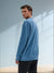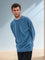 Sinsay Men's Blue Ribbed Long Sleeve Crew Neck Blouse