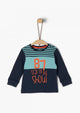 S.Oliver Boy's Beige Long-Sleeve Blouse This is a long-sleeved t-shirt from S.Oliver, featuring a stylish gradient stripe design in red, white, and black. The graphic on the front includes the text "S.OLIVER EST. TRM," giving it a modern and sporty...