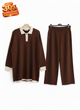 Elevate your loungewear and casual style with this perfectly coordinated two-piece knit set. Combining ultimate comfort with sophisticated details, this set features an oversized polo top and flattering wide-leg trousers, perfect for effortless, all-day wear.