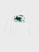 This boys' long sleeve blouse is a comfortable and practical option for any occasion. Made of soft cotton, it's comfortable to wear. The crew neckline with a ribbed trim and snap closure at the shoulder give it a subtle touch. Dropped shoulders and long sleeves provide warmth on cooler days. Additionally, a large front pocket is a convenient addition. This blouse complements any outfit, ensuring comfort and convenience.