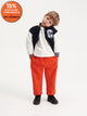 A long-sleeved T-shirt for boys is the perfect choice for any occasion. Made of soft cotton, it provides convenience and comfort of wearing. A semi-circular neckline with a ribbed and long, raglan sleeves add elegance to the whole. There is a decorative print on the front of the jersey, and the slits on the sides make the jersey very feminine. This cute model will work well in any outfit and will surely delight every boy.