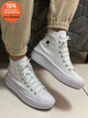Step into innovation with the Chuck Taylor All Star Hi CX Explore Sneakers by Converse, blending classic high-top style with modern tech. Crafted from durable canvas in a sleek black and white palette, these sneakers feature a CX foam midsole for next-level comfort, a rubber outsole for grip, and a lace-up closure for a secure fit. The translucent details and futuristic design elements add a bold twist to the iconic silhouette—perfect for streetwear lovers and sneaker collectors alike.
