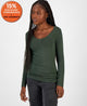 Hooked Up Women's Plum Ruched Ribbed V Neck Long Sleeve Blouse