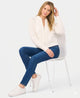 - Embellished fringe design at front yoke; ribbed knit
