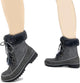 - UPPER: Available in waterproof suede and PU coated leather with faux fur collar or waterproof canvas with PU coated leather with faux shearling. Microfleece lining. Waterproof seam-sealed construction. Laces are not waterproof.