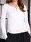 Sinsay Women's White Ribbed Half-Zip Blouse