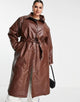 Asos Design Women's Khaki Coat 11615702 ASOS DESIGN Curve faux leather belted grandad in olive AN83,an85