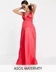 Asos Design Puff Sleeve Maxi Dress With Buckle Detail In Pink.