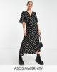 • Asos Design bridesmaid satin kmono sleeve maxi dress with panelled skirt and belt in pink