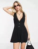 Bubble Crepe Frill Sleeve Tea Playsuit In Checkerboard