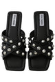 Olympian Sandal from Steve Madden. Flat sandals from Steve Madden. Olympian Sandal is made in light blue denim and is decorated with sparkling rhinestones. Square toe and wide strap over the foot.