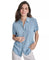 DKNY Jeans Women's Light Blue Petite Rolled Short-Sleeve Button-Up Shirt