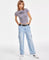 Just Polly Women's Gray Crewneck Ruched-Front Baby Blouse