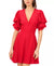 1.State Women's Red Tiered Bubble-Sleeve V-Neck Mini Dress