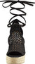 Steve Madden Women's Black Platform Heeled Sandals  Product details Sole material: Ethylene Vinyl Acetate Outer material: Fabric Inner material: Manmade Closure type: Lace Up About this item Outer Material: Fabric Inner Material: Manmade Sole: Ethylene Vinyl Acetate Closure: Lace Up...